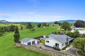 Set back from the road and framed by established trees and gardens, this well presented 1960s weatherboard home offers a wonderful sense of space and openness, with rural outlooks stretching toward Mount Kakepuku. With only one direct neighbour to the right and farmland on the other two sides, the setting feels open and green, creating a strong connection to the surrounding countryside. Positioned on the north side of Te Awamutu, everyday convenience is close at hand, just 5km to Te Awamutu, 24km to Cambridge and approximately 25km to Hamilton.