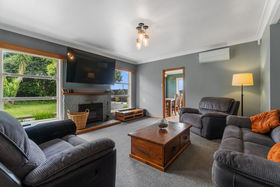 Inside, the 141sqm (more or less) home is warm and welcoming, offering three generous bedrooms, all with double wardrobes. A separate lounge provides a comfortable space to relax and unwind, while the home is well equipped for year round living with a heat pump, wood burner and heat transfer system. The bathroom is practical and family friendly with a shower, bath and vanity, complemented by a separate toilet and separate laundry for added functionality.
