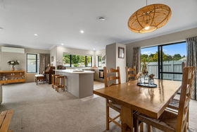 The large central kitchen flows seamlessly into the open plan living and dining area, creating a welcoming space for everyday living or entertaining. All three bedrooms are generously sized, while the two bathrooms add extra convenience for families or guests.