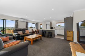 Perched proudly above the street to capture sunshine and elevated views across Te Awamutu, this modern home offers a stylish blend of comfort, practicality and easy care living. Built in 2019 and finished with crisp linea cladding complemented by a striking vertical cedar feature, the home has fantastic street appeal while remaining wonderfully low maintenance. With four bedrooms, two bathrooms and a flexible layout spread over two levels, it's a property that suits busy lifestyles, families or investors looking for something modern and effortless to own. Inside, the home is light filled and thoughtfully designed. The modern kitchen sits at the heart of the open plan living and dining area, creating a welcoming hub where everyday living and entertaining come naturally. Upstairs you'll find three bedrooms including the spacious master complete with ensuite, alongside the family bathroom. Downstairs adds valuable flexibility with the fourth bedroom and a generous rumpus room, ideal as a second lounge, guest space or work from home setup. Double glazing and a heat pump ensure year round comfort throughout. Outdoor living is just as appealing, with seamless flow from the living space out to the sunny deck where you can unwind and take in the elevated outlook over the township. The easy care 400sqm (more or less) section keeps maintenance simple while still offering enough outdoor space to enjoy. An internal access double garage completes the practicalities, with an additional side storage shed providing extra space for tools and gear. Modern, low maintenance and perfectly positioned, this home would suit a wide range of buyers and also makes an excellent rental option thanks to its easy upkeep. https://rwteawamutu.co.nz/TEA31416